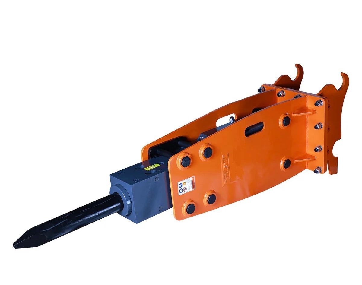 New 10 to 15 Ton Q/C Excavator Hydraulic Hammer Breaker, 4'' (100mm) Moil Point Chisel, 1960 Joules Impact Energy, 400-700BPM