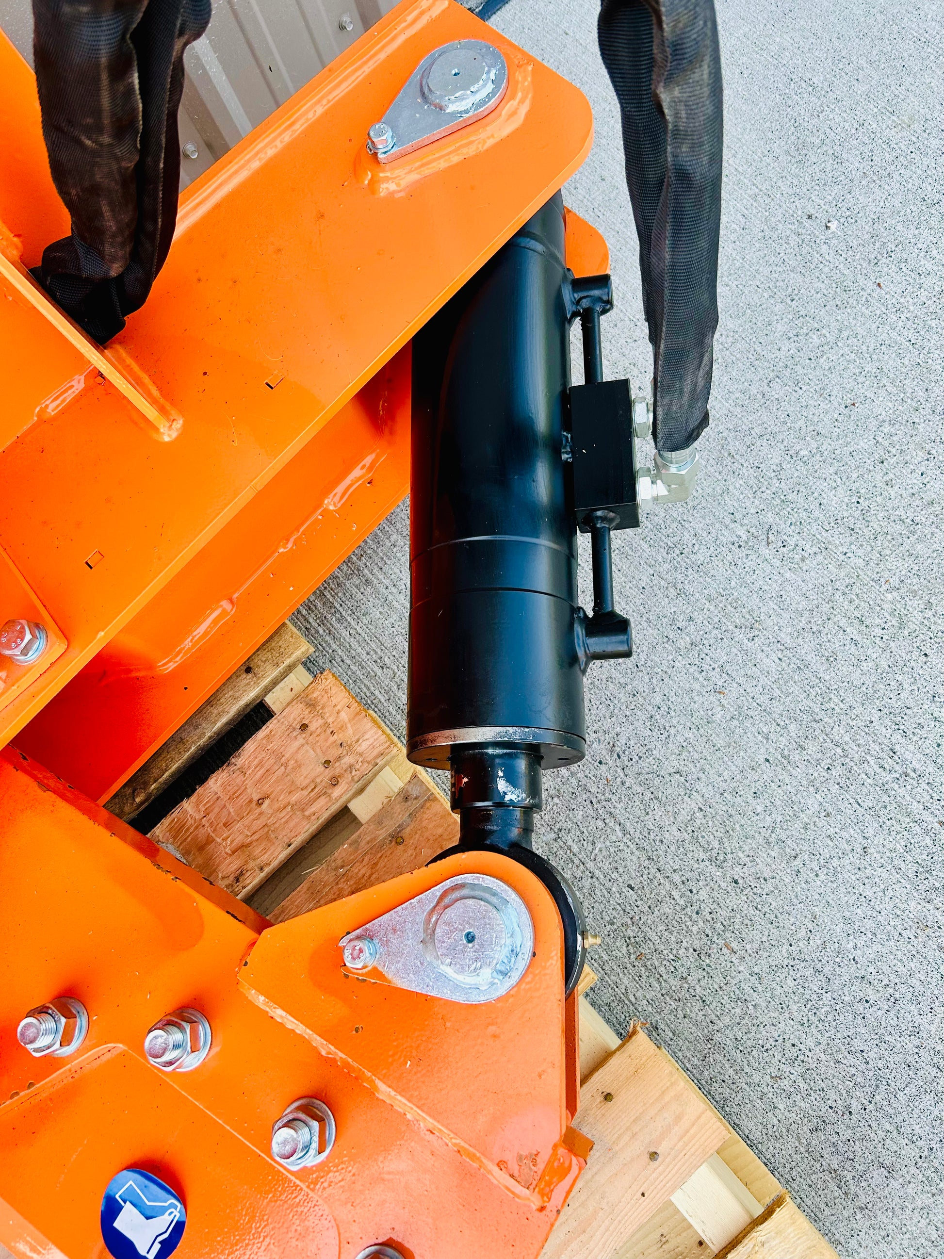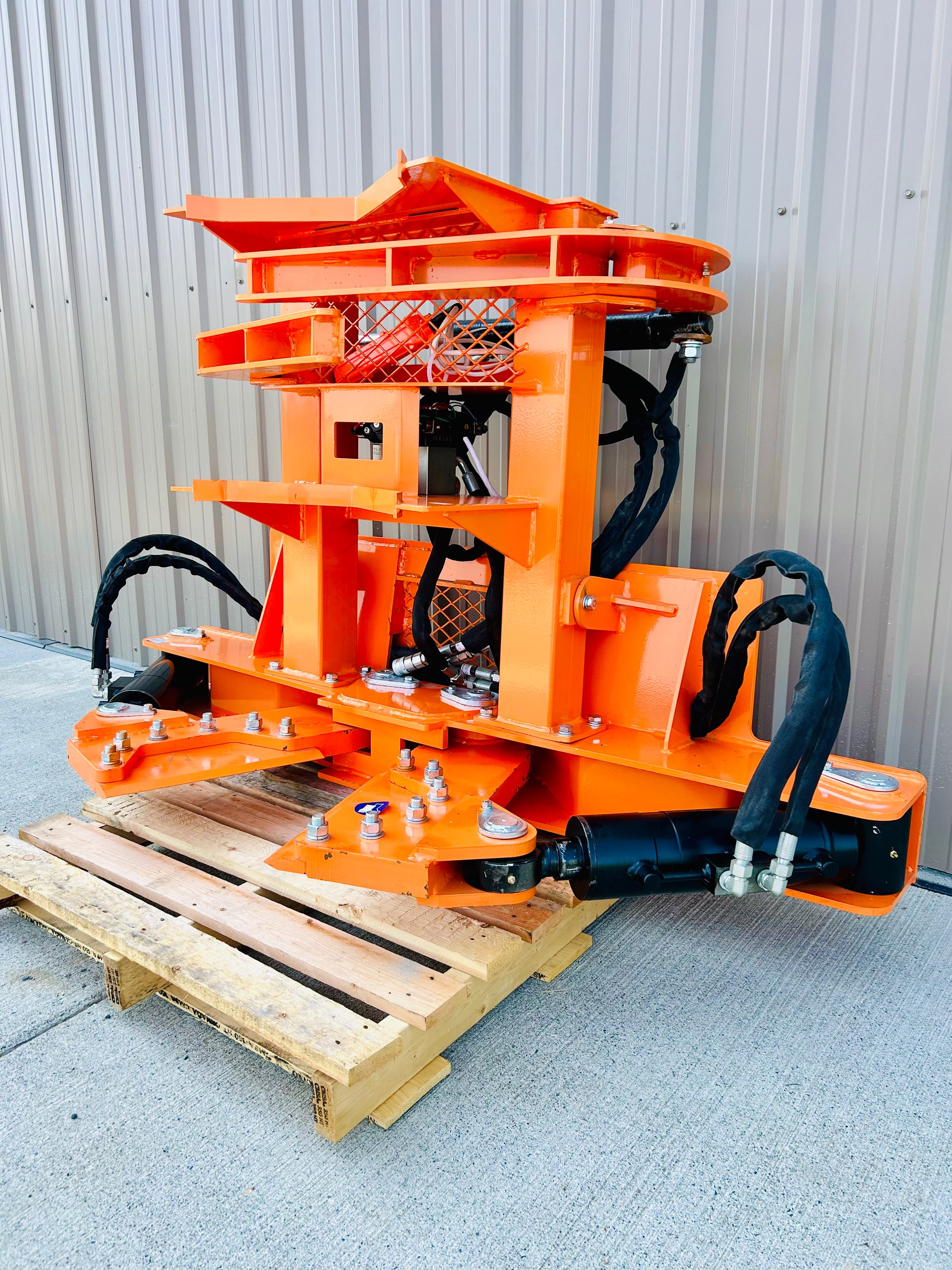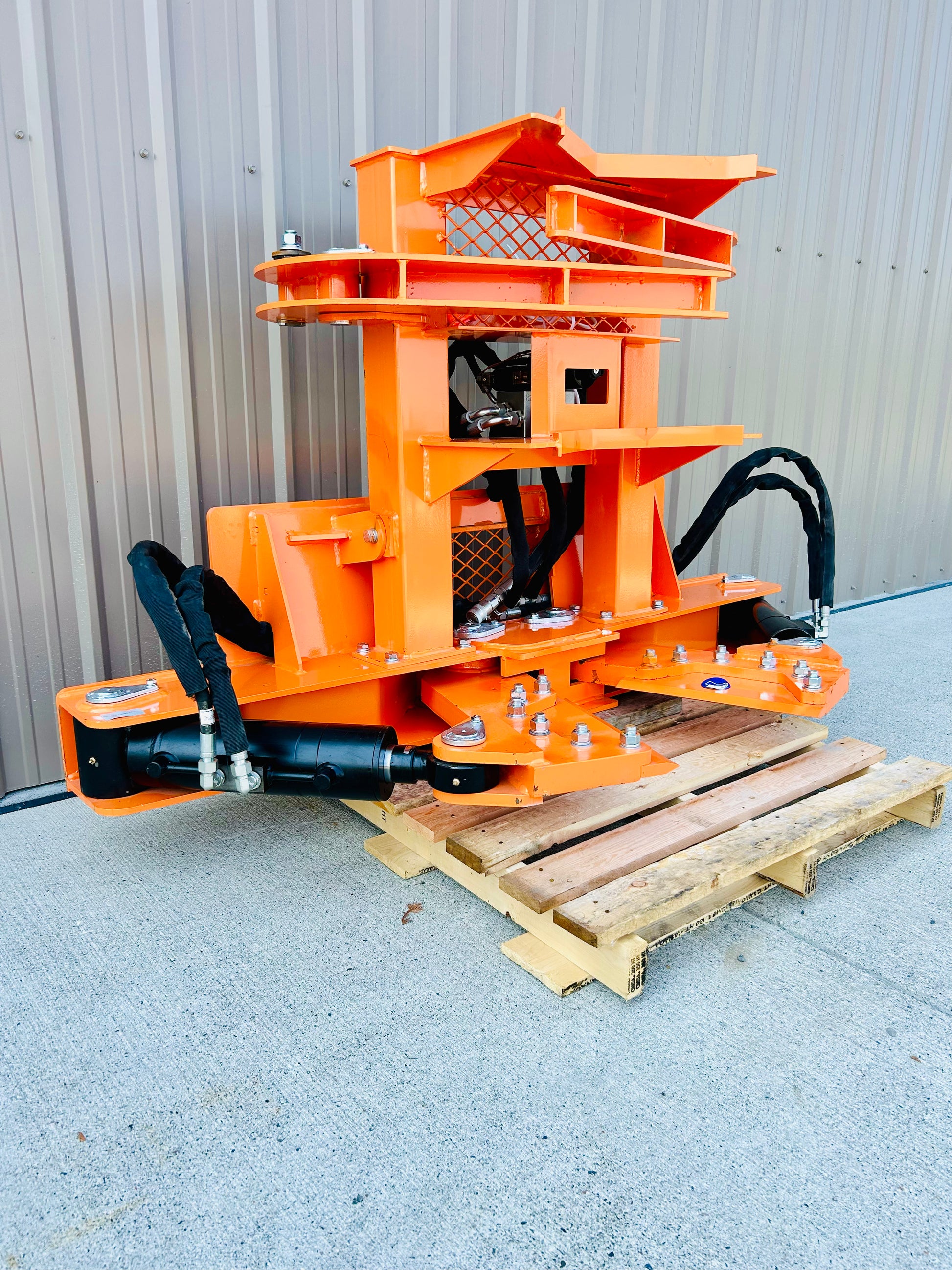 1. The shear shape equipped blades are driven by a pair of hydraulic cylinders to finish the shearing action and cut off the tree trunk.