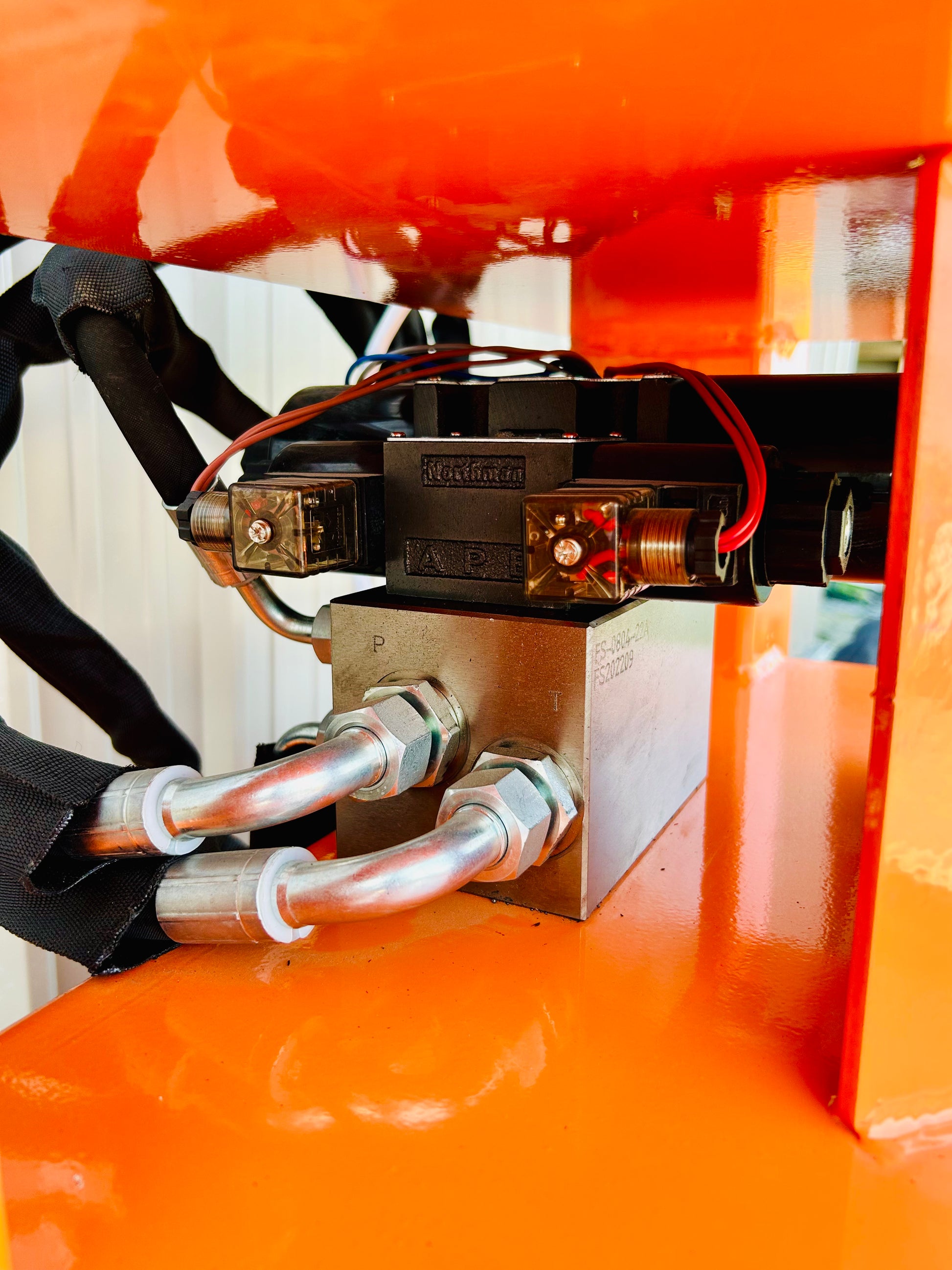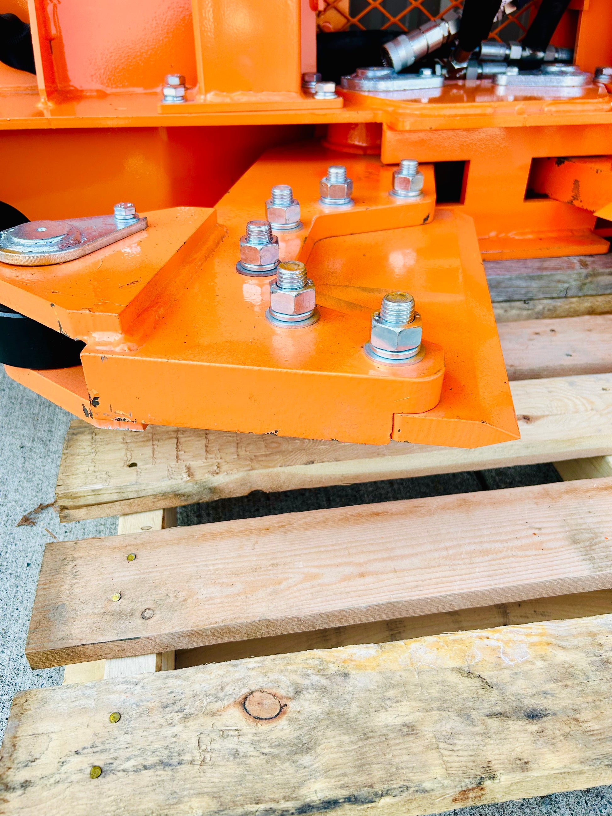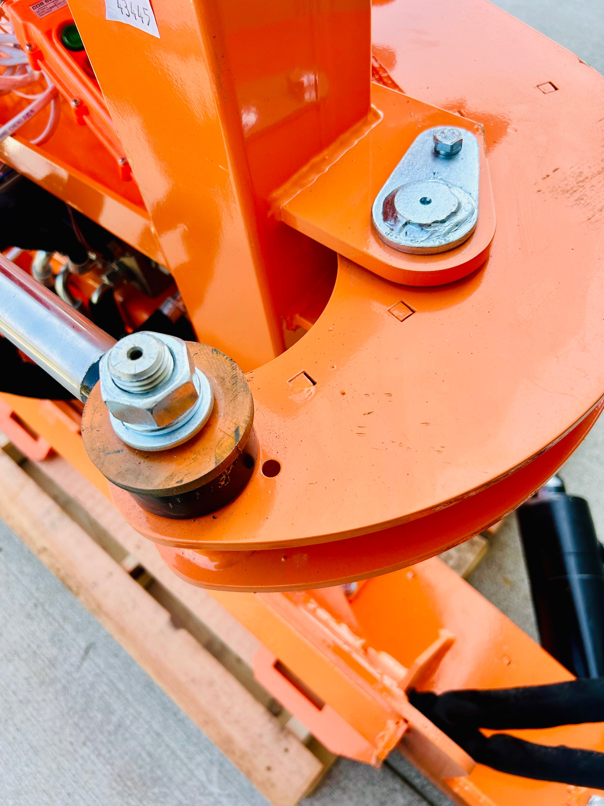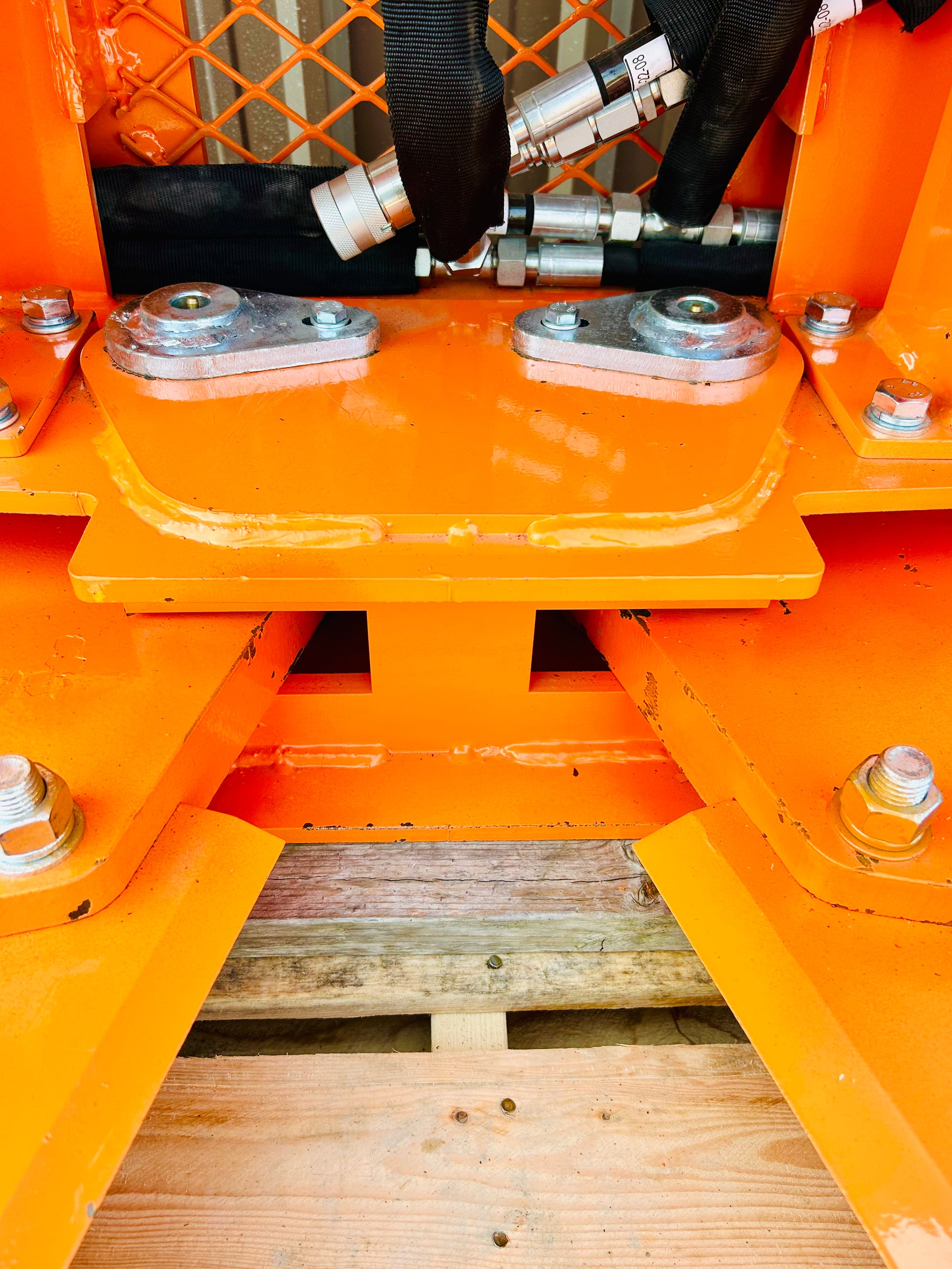 1. The shear shape equipped blades are driven by a pair of hydraulic cylinders to finish the shearing action and cut off the tree trunk.