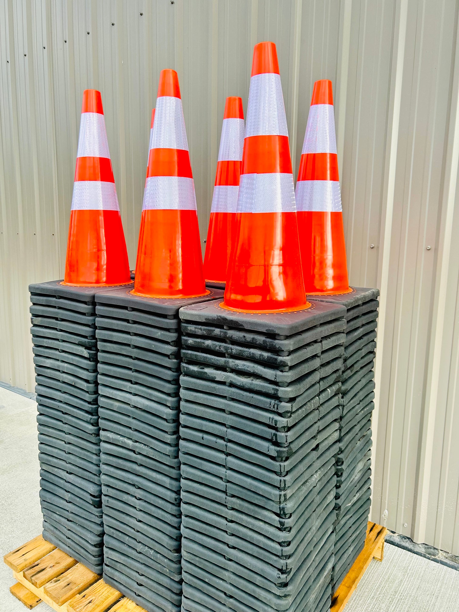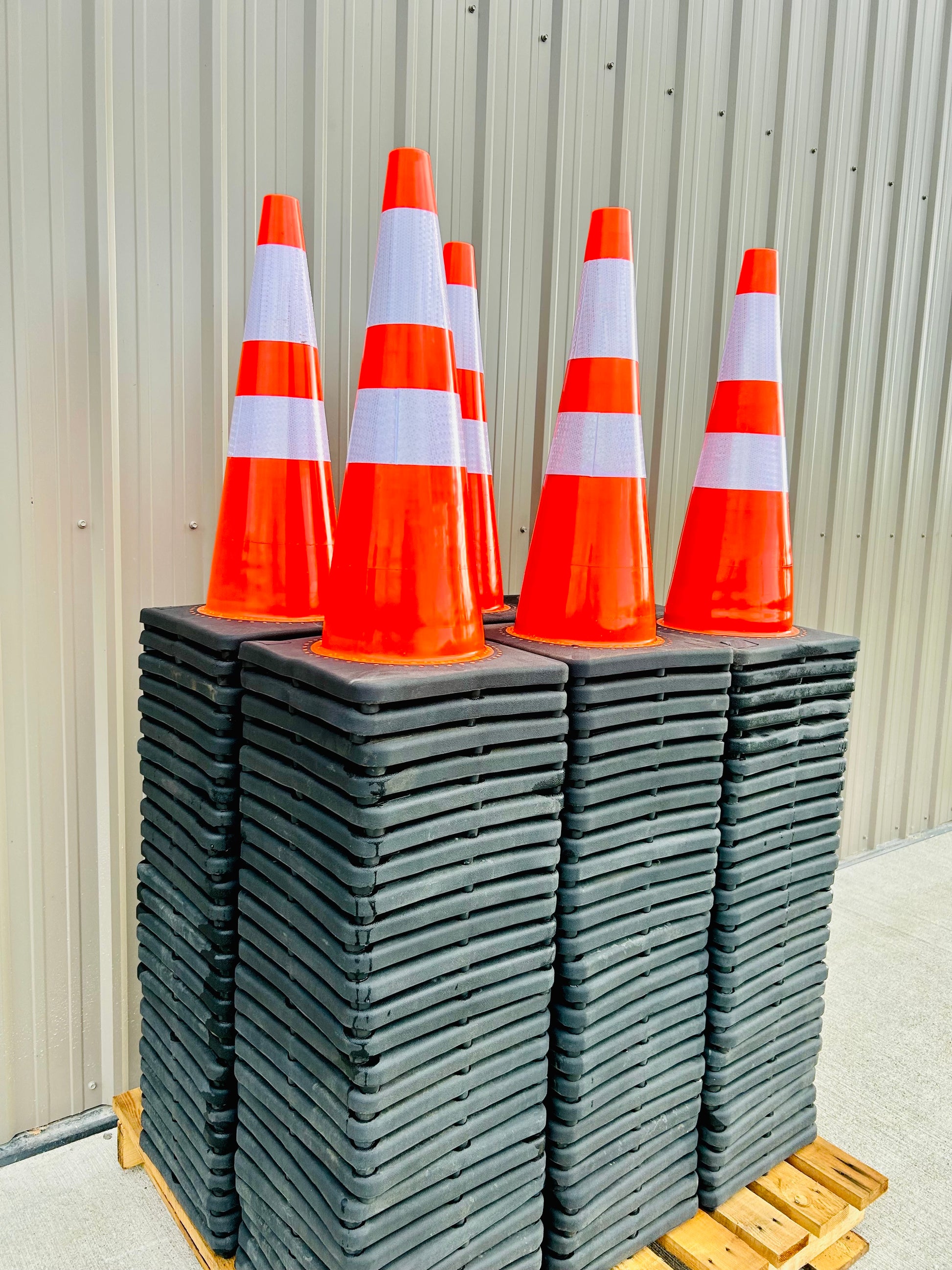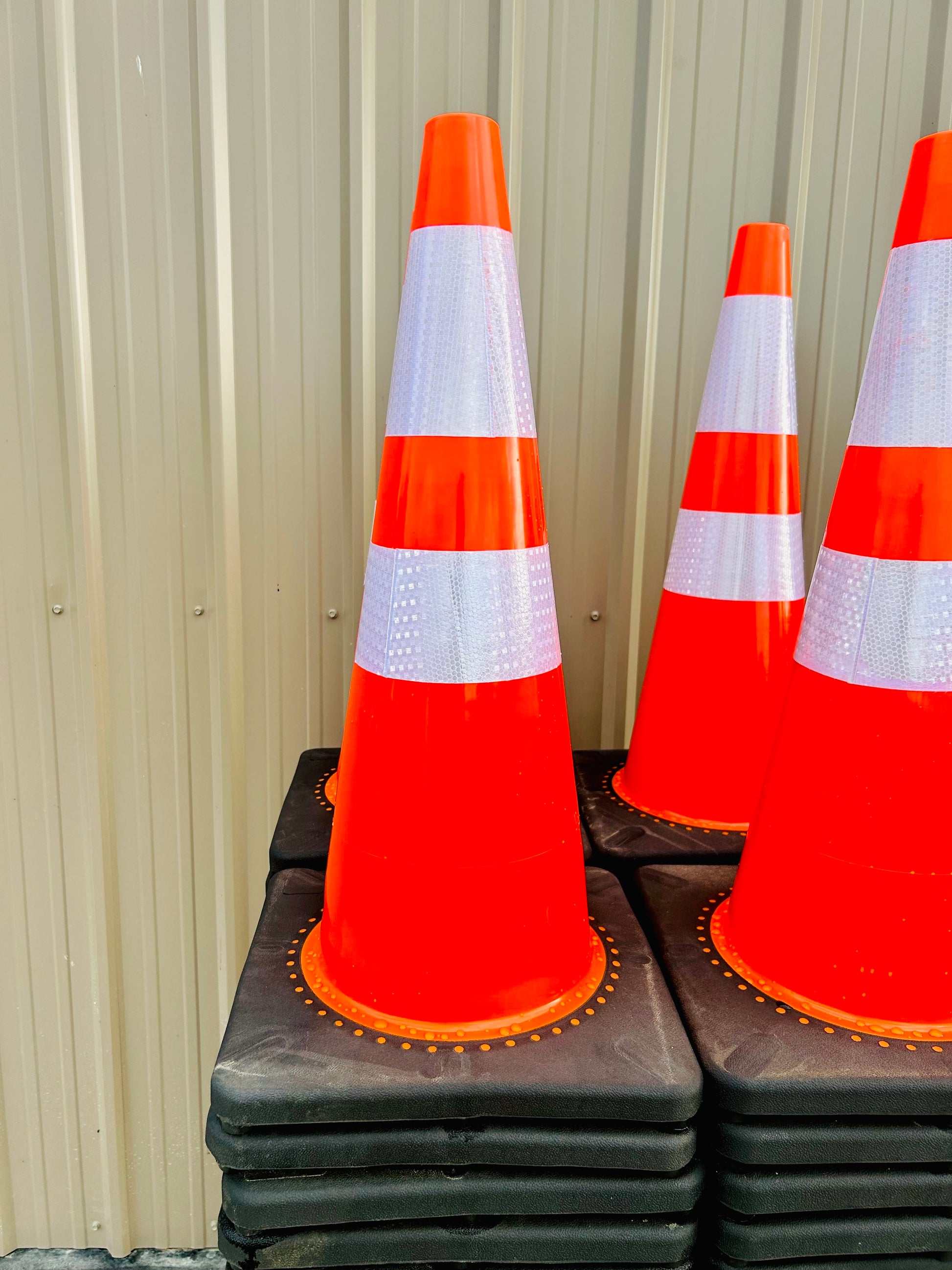 These Traffic Cones are the best choice with high quality at the same price rate. Traffic cones, also known as pylons, road cones, safety cones, highway cones, channelizing devices, construction cones, or just cones. Traffic cones are usually placed on roads or footpaths to warn and redirect traffic in a safe manner. The reflective white bands are required to increase nighttime visibility. These High Quality safety cones are highly noticeable and easily movable.