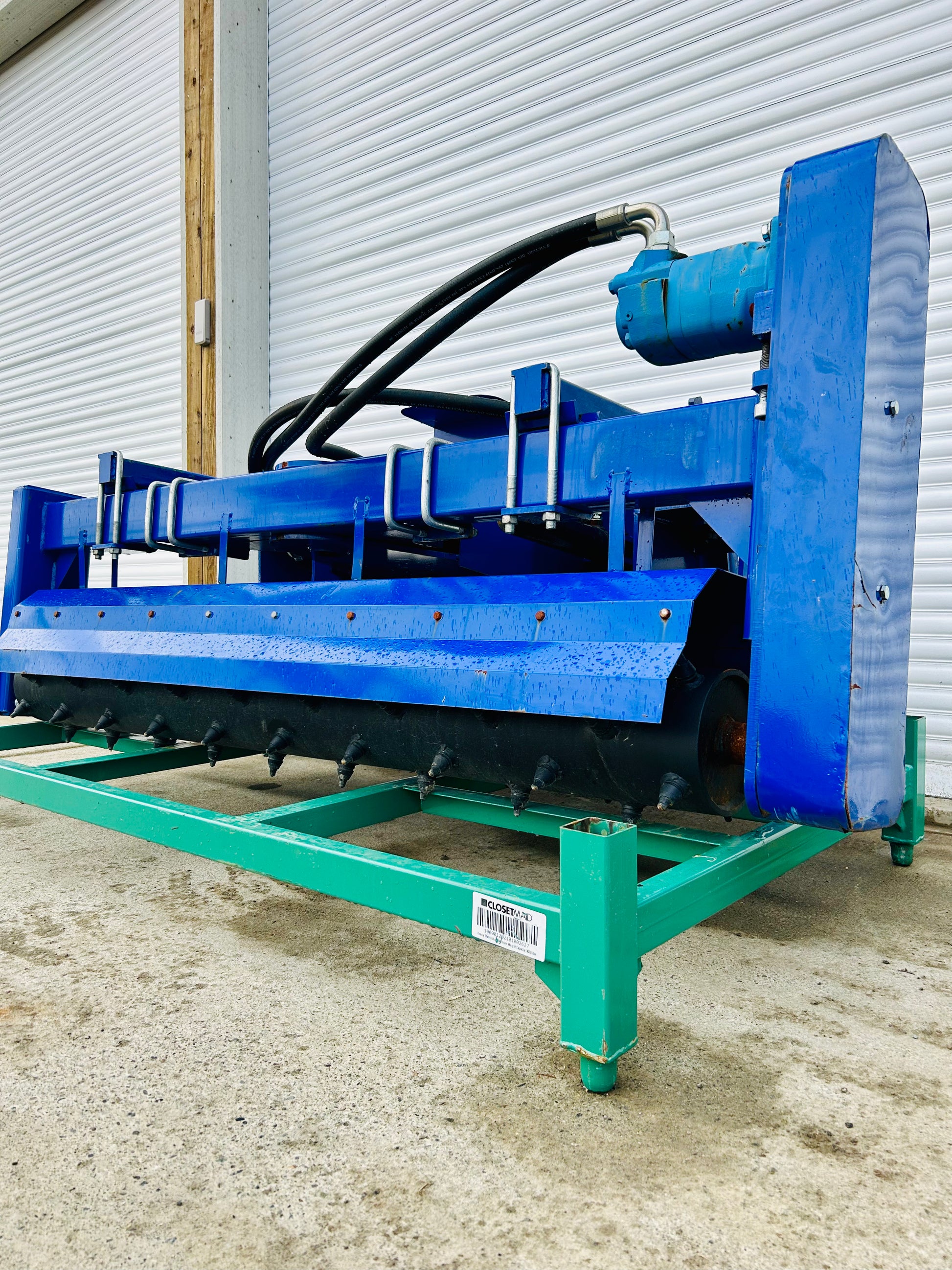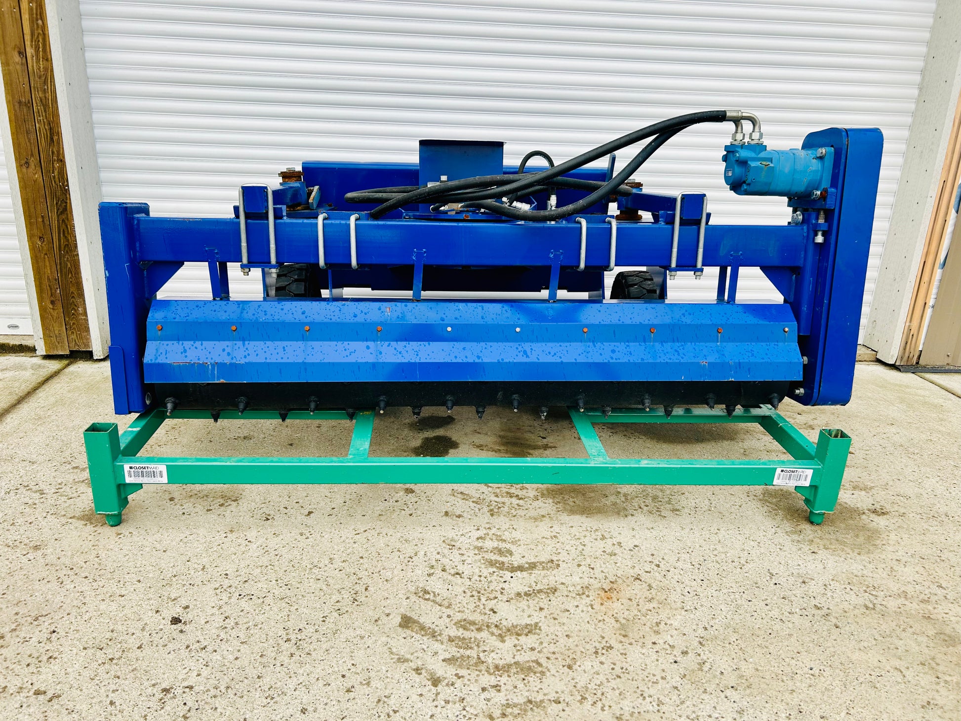 - Rotating drum has carbide-tipped teeth that rip through clumps and penetrate the soil
