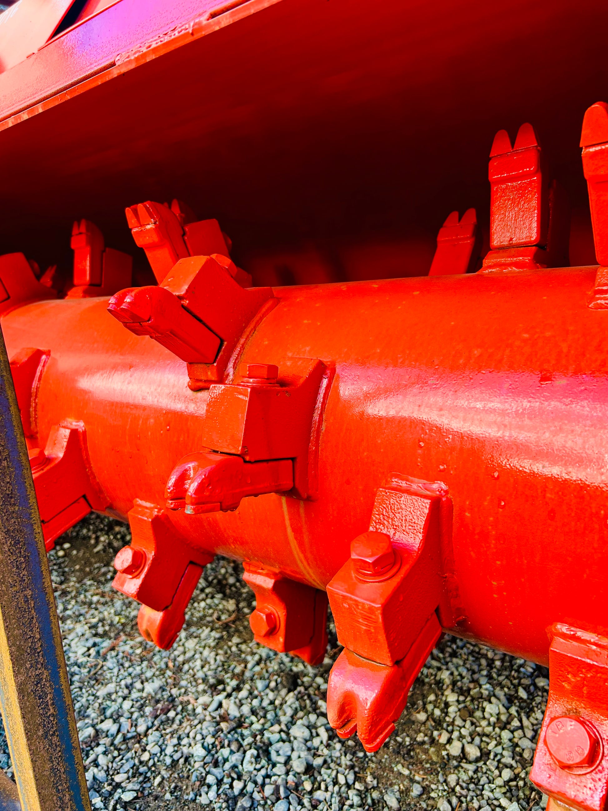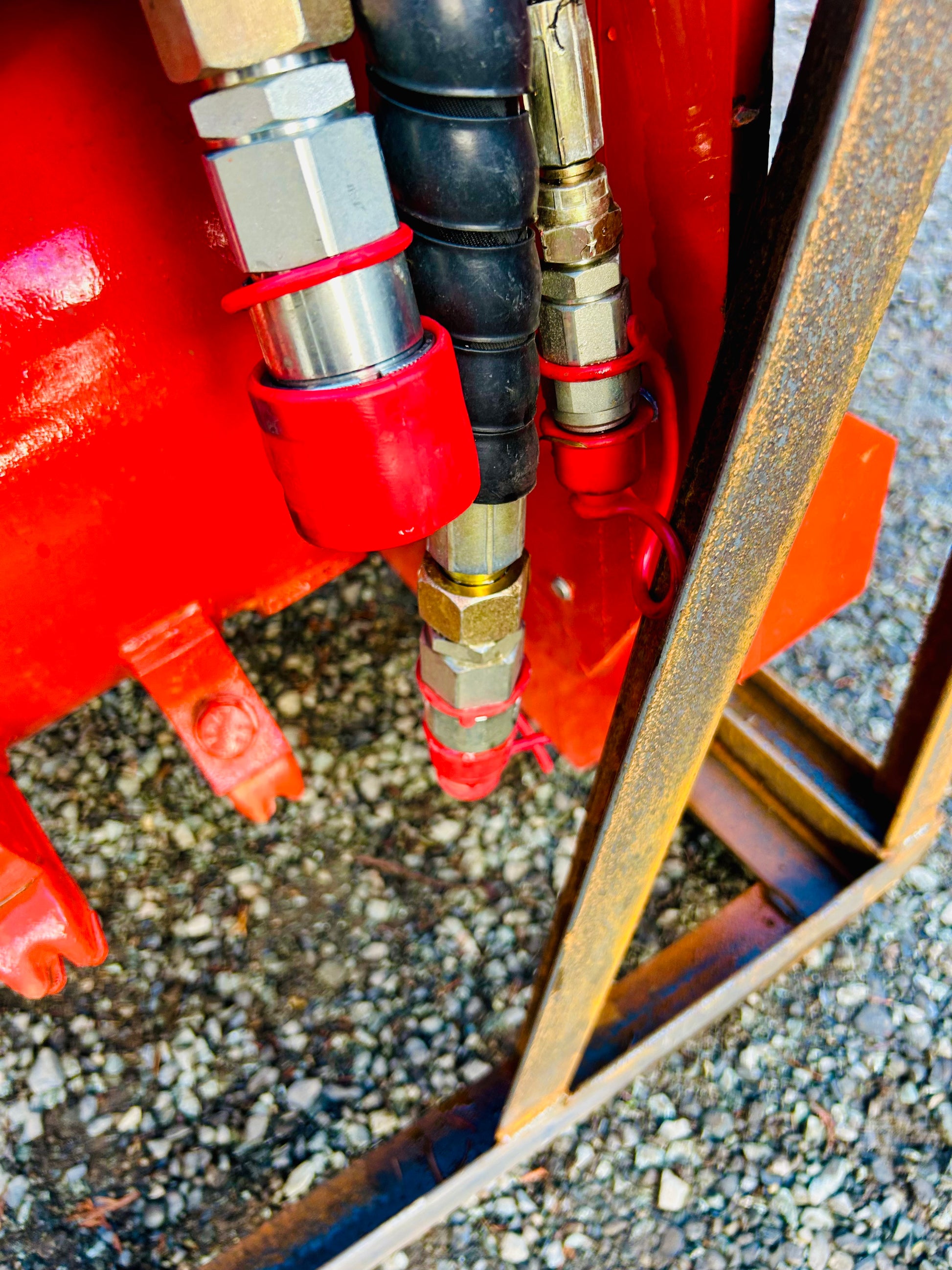 1. Triple helix claw teeth layout for hardwood, stumps, and branches. Hydraulic hoses and 3/4" flat-faced couplers.