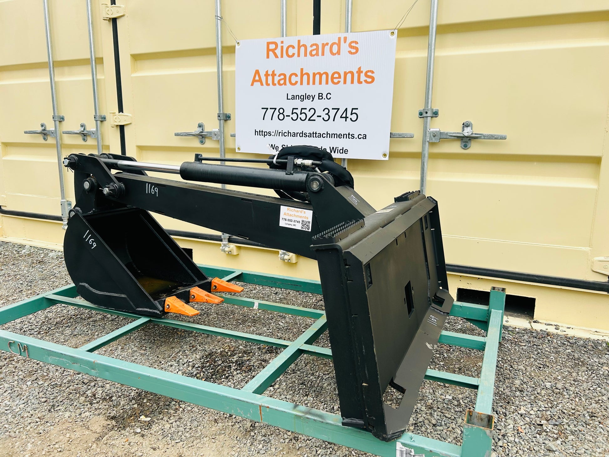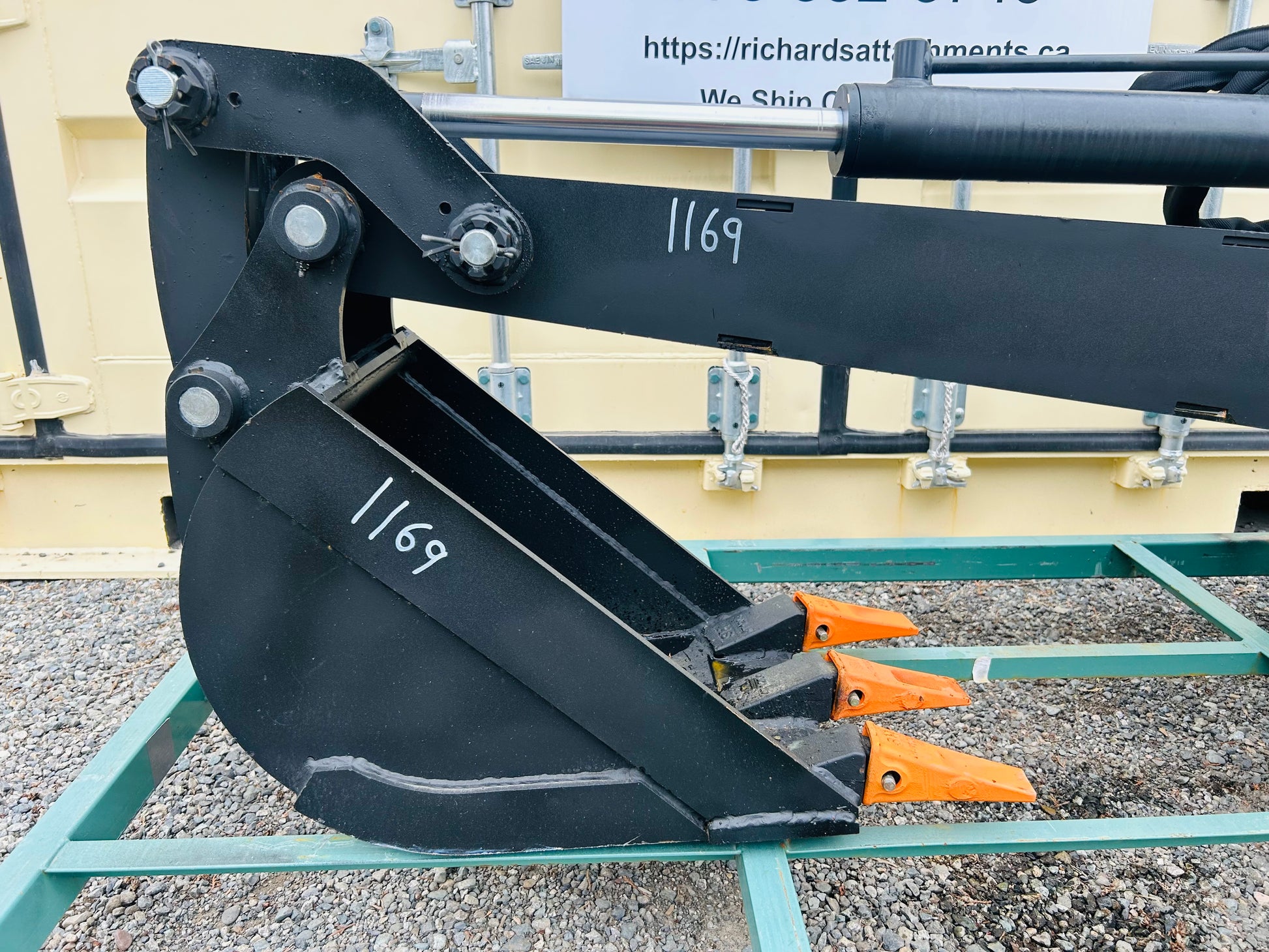 Introducing the skid steer backhoe arm the perfect tool for tackling any job. This rugged quick attach backhoe is designed to withstand the toughest conditions and will provide you with years of reliable use. The large capacity bucket allows you to move more material in less time, while the extra strong pivot linkage ensures greater stability and durability. And for added convenience, easy access to grease fittings ensures your backhoe arm is always running at peak performance. With our skid steer backhoe arm, you'll be able to tackle any job with confidence.