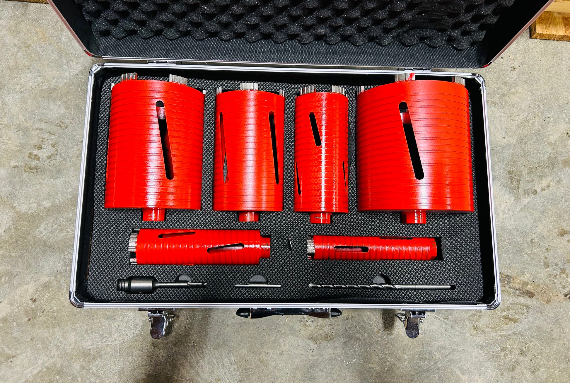 New POWERTEK 6 PC Diamond Dry Core Drill Set With Accessories