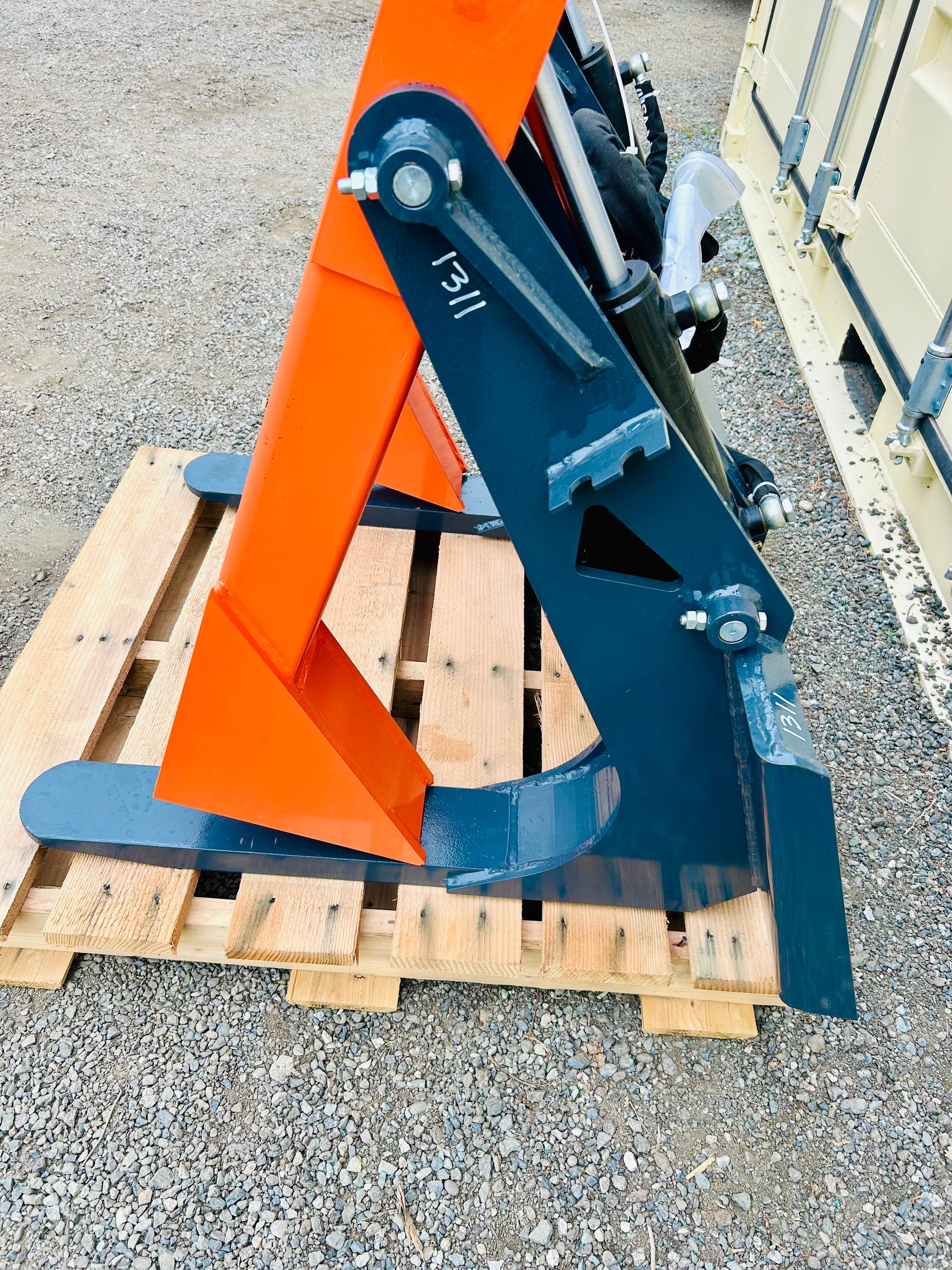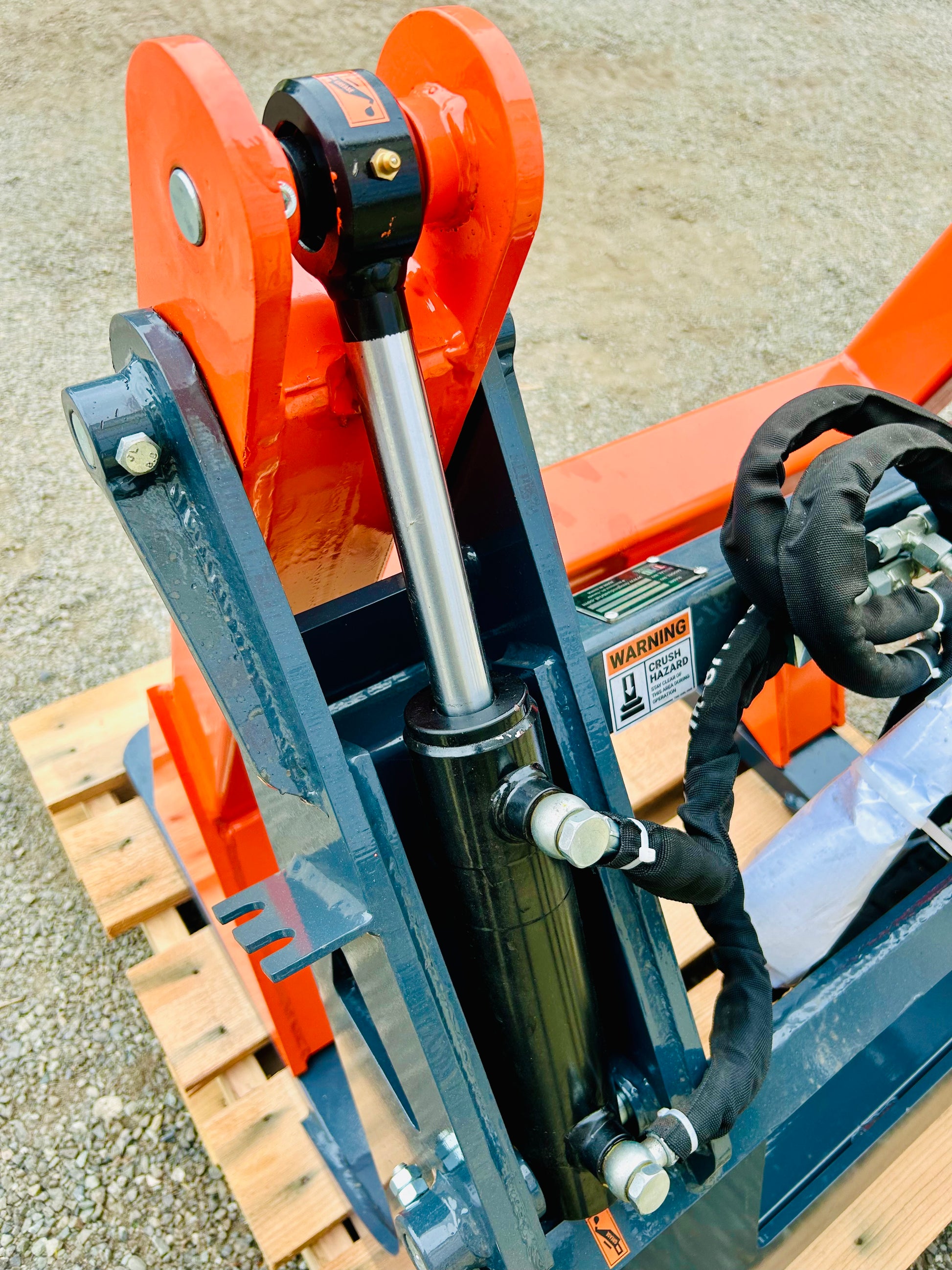 - Hydraulic cylinder grapple arm (with guard) operates under 3000 PSI of pressure for a heavy-duty working capacity