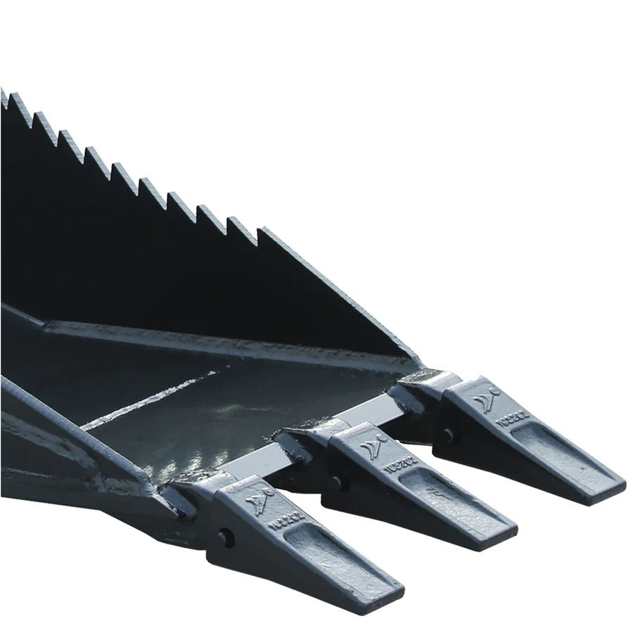 - Three heavy-duty, replaceable, bolt-on, hardened steel cutting teeth help to break up the ground immediately upon impact using the force of your skid steer