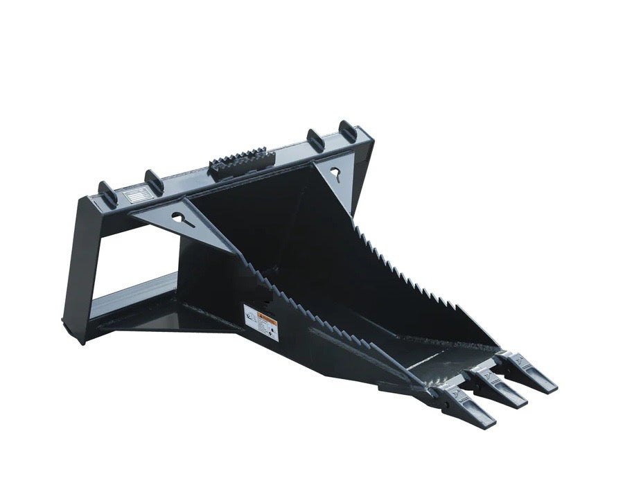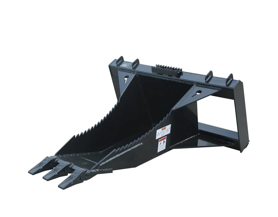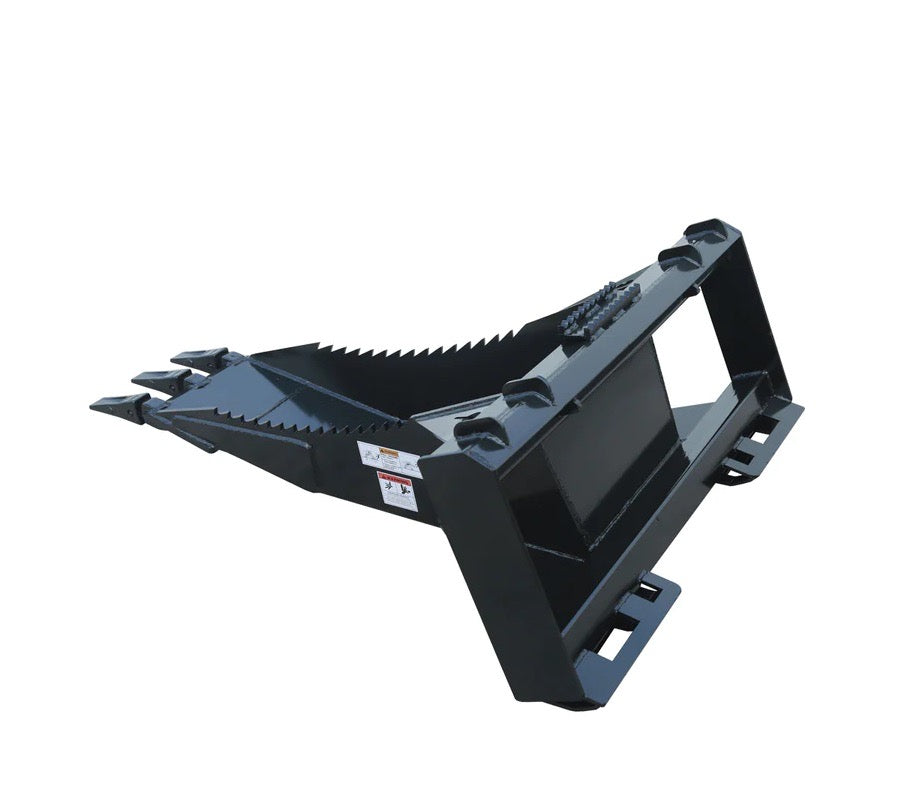 New Premium 50” Skid Steer Stump Bucket w/Universal Quick Attach Mount, Bolt-On Cutting Teeth, Curved Bottom, Reverse Curled Ripper Teeth