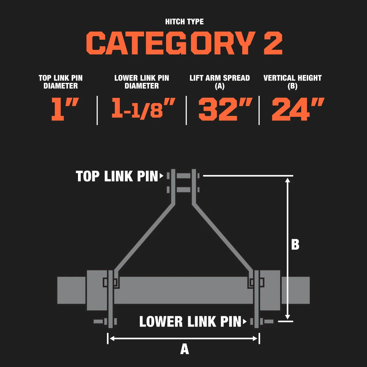- Driveline shaft length: 39-1/4” - 50-3/8” (telescopic)