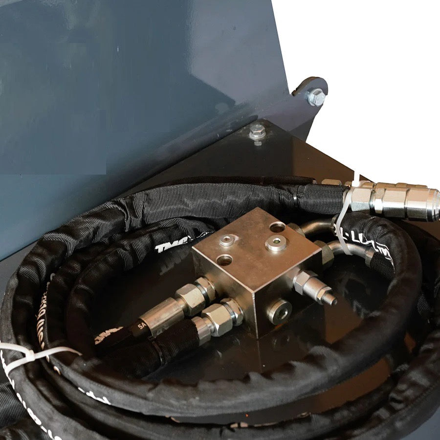 - Direct drive, high torque cycloidal motor that draws power from your skid steer to the woodchipper through hydraulic hoses and flat-faced couplers, offering more torque and force production than an electric or motorized stand alone unit