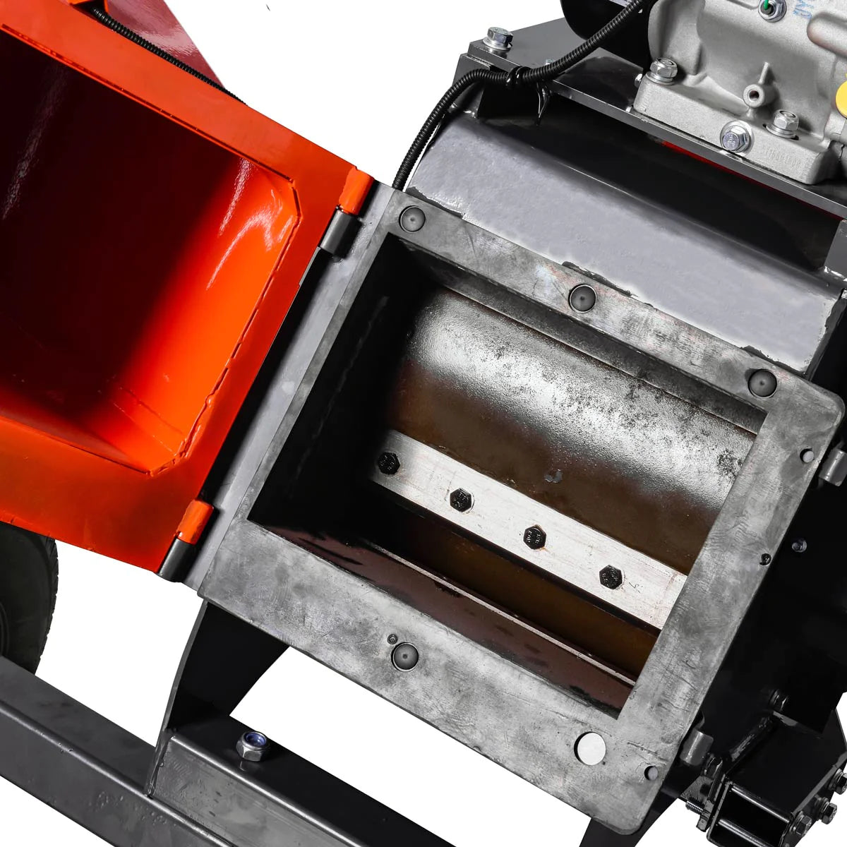 - Gravity fed sloped chute offers effortless feeding for branches, twigs, shrubbery, compost and any other debris that needs to be processed