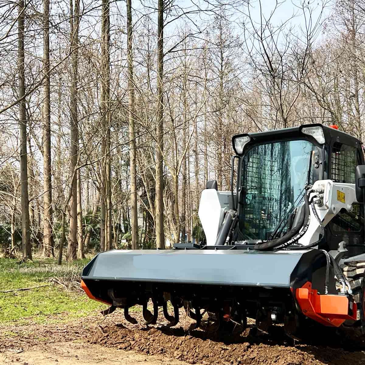 - Universal skid mount compatible with most skid steers for the reworking and preparation of your acreage, garden, nursery or small hobby farm land