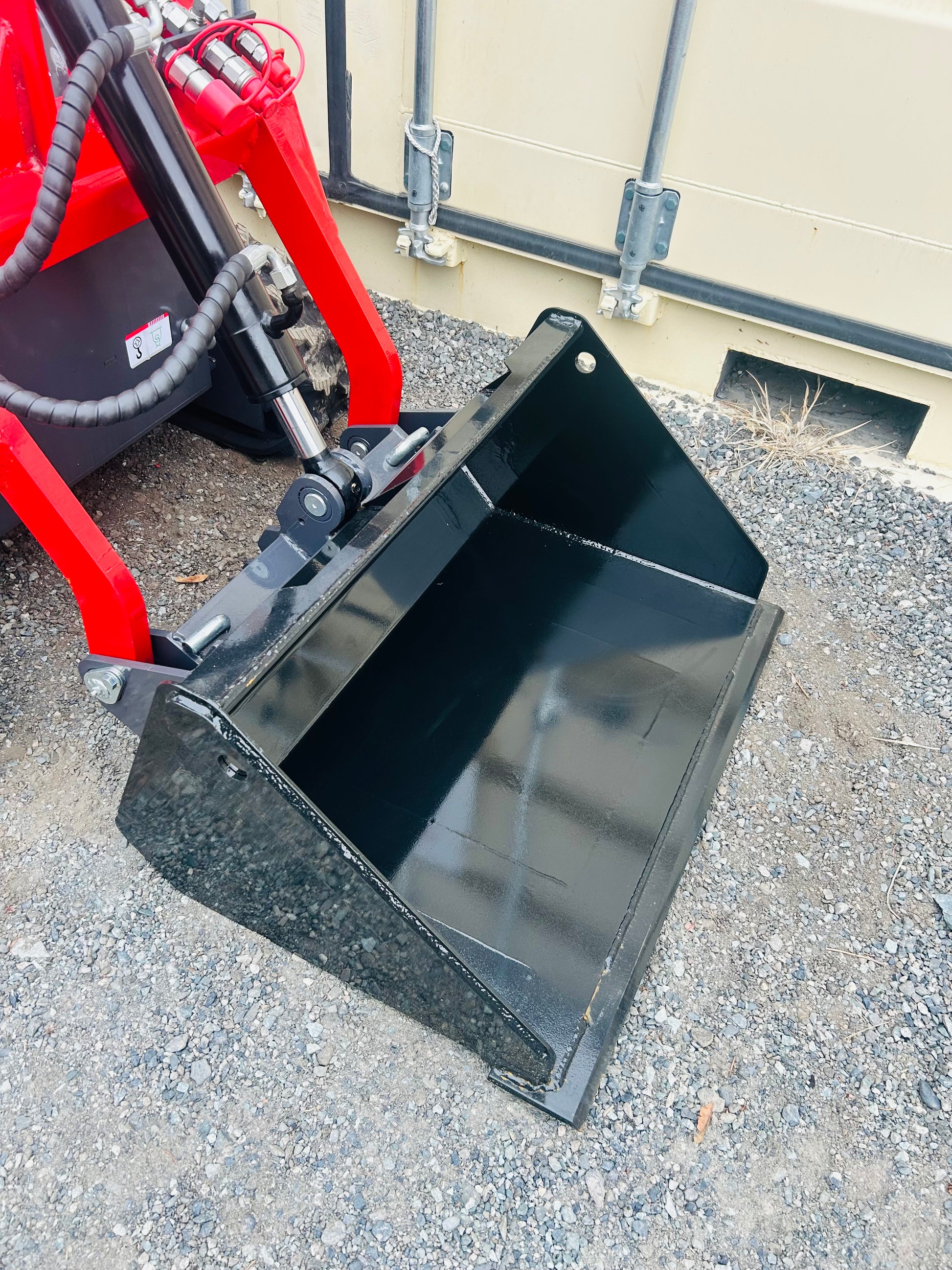 - Attachments: Standard bucket with quick-attach system; compatible with various attachments